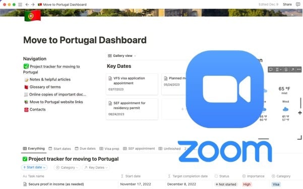 Book me for a 30-40 minute long Zoom call for additional help with the Notion template for the USA to Portugal planning kit or to help with any other questions you might have.